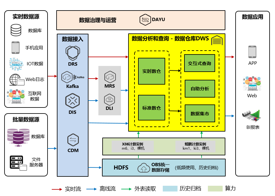 交通银行数据仓库(DWS)在核心技术上跟传统数据库相比有巨大优势,可以解决数据处理性能问题,为超大规模数据管理提供高性价比的通用计算平台,用于支撑各类数据仓库系统、BI(Business Intelligence)系统和决策支持系统,统一为上层应用的决策分析等提供服务,其具体应用于以下场景: